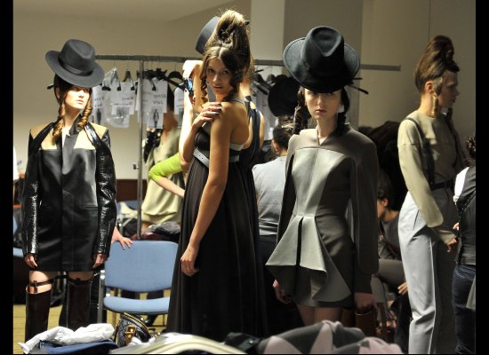 We’ve posted a number of posts about cultural appropriation in fashion, particularly when it comes to Native Americans. Kristyn G. sent in a link to a story at the Huffington Post about a recent fashion show in Moscow that brings up questions about cultural appropriation of another group. The show, from St. Bessarion, included female models in hats, sidecurls, and some articles of clothing inspired by things worn by Orthodox Jews, combined with distinctly non-Orthodox items: