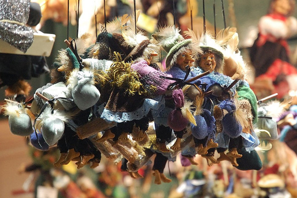 While most Americans will probably recognize the above image as a witch, a possibly evil character associated with Halloween in the U.S., many Italians would see a motherly figure who keeps a clean house (hence the broom) and gives candy or coal to children. The character’s name is Befana. Thanks to Katrin for drawing my attention to her.