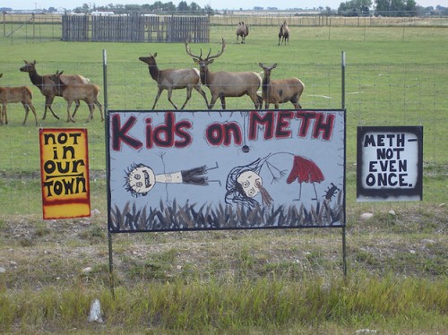 What I found interesting was how many home made signs in rural areas were included. It suggests that many people in small towns feel that their children are under attack. Meanwhile, there’s no big money in drug addiction prevention. Hence the town-specific, home made signs that contrast so starkly to the generic, glossy, high-production value advertising we are so used to seeing.