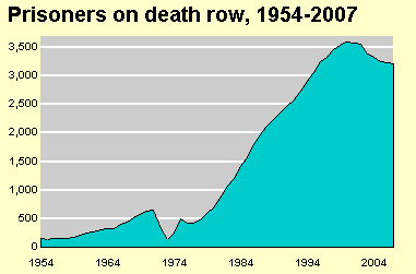 thirty-seven u.s. inmates were executed in 2008, the fewest since 1994. nevertheless, 3,220 people remained on death row at year-end 2007. the latter number has also been declining since the mid-1990s, though at a far slower rate than executions. click the figures if you’d like to see the raw data.