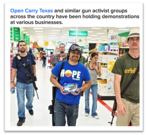 White men go shopping with their guns and express their rights; black men get assaulted carrying a permitted firearm because they are seen as criminals. Racial profiling is highly evident when we look at the experience of people of different races carrying weapons in public. From Mother Jones… “A surveillance video from a Walmart … Continue reading RACE AND GUNS: Racial profiling and carrying a weapon