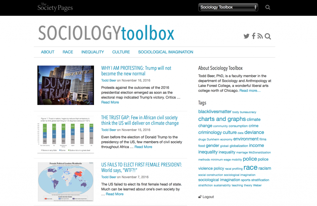 Our mantra here at Sociology Toolbox, has never been more important: TEACH WELL, IT MATTERS. One this last day of 2016, the view from the top floor of the world headquarters of Sociology Toolbox is overcast and gloomy – both literally and figuratively: Trump is a few weeks away from being inaugurated, police in the U.S. continue to … Continue reading SOCIOLOGY TOOLBOX: The year in review